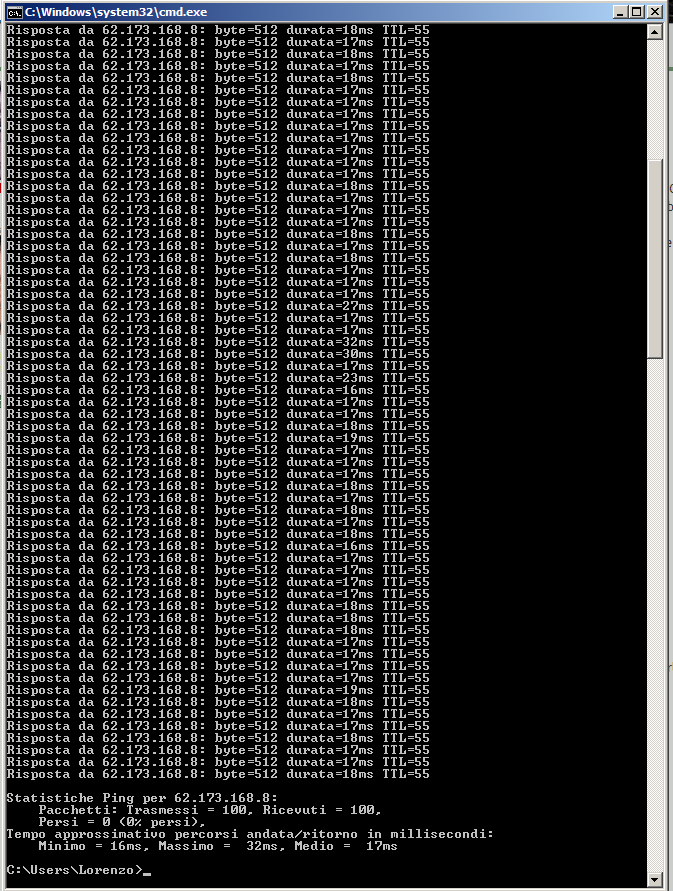 C:\Users\Enrico>ping 62.173.168.8 -l 501 -n 100