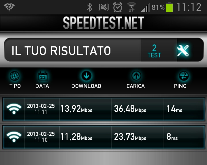 Primo test connessione fastweb